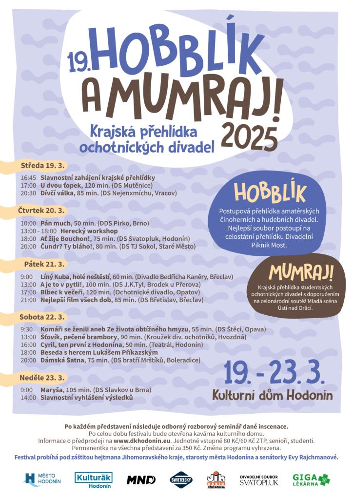 18. ročník krajské přehlídky ochotnických divadel Hoblík a Mumraj 20.3.2025 Hodonín