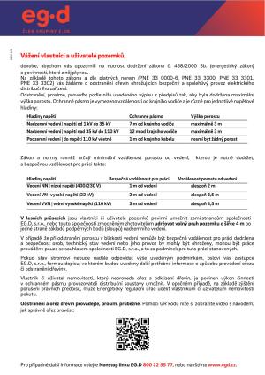 Upozornění vlastníkům na odstranění a ořez dřevin na vekovním vedení EGD