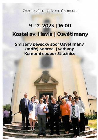 Smíšený pěvecký sbor Stříbrnice, Ondřej Kabrna, Varhany, Komorní soubor Strážnice 9.12.2023 v 16:00 hodin Kostel sv. Havla, Osvětimany