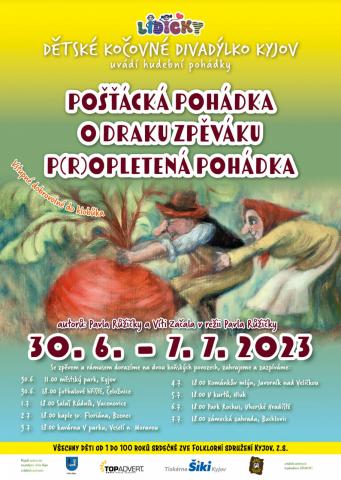 vyráží v pátek 30.6.2022 na tradiční KOČOVNÉ TURNÉ. Se dvěma koňskými povozy se banda dětí a hudebníků vydává na týdenní šňůru představení, která probíhají na upraveném voze obvykle v 18 hodin. Na programu jsou letos hudební pohádky – Pošťácká pohádka, O draku zpěváku a P(r)opletená pohádka, které tvoří spolu s dalšími písničkami asi hodinový blok. Vstupné je dobrovolné – do klobouku.