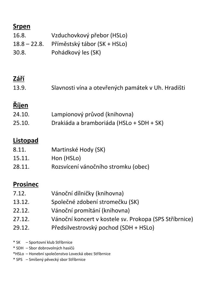 Plán akcí ve Stříbrnicích na rok 2025 2