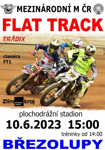 V sobotu dne 10. června 2023 se na plochodrážním stadionu v Březolupech uskuteční třetí závod šestidílného seriálu Mezinárodního Mistrovství České republiky – závody Flat-track. Tato nová disciplína má americké kořeny a závod je vypsán pro kategorie FT 1 a FT classics . Do rozjížďky může najednou nastoupit až dvanáct jezdců , kteří pojedou dle rozpisu závodu 10 – 15 kol. Systém rozjížděk vyvrcholí po kvalifikacích ve finále, kde se utká nejlepších dvanáct borců o vítěze závodu v jednotlivých kategoriích
