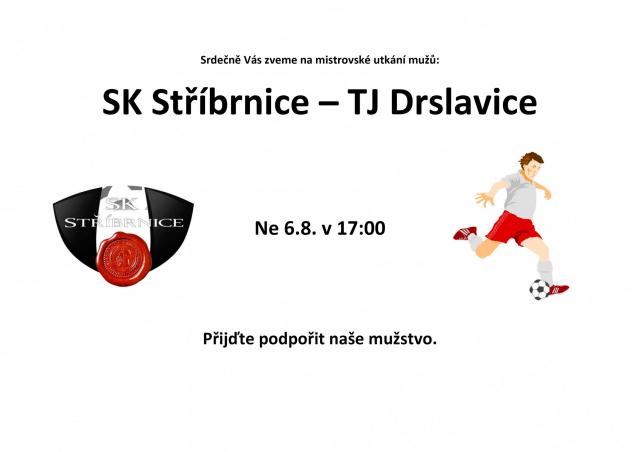 Srdečně Vás zveme na mistrovské utkání mužů: SK Stříbrnice – TJ Drslavice Ne 6.8. v 17:00 Přijďte podpořit naše mužstvo.
