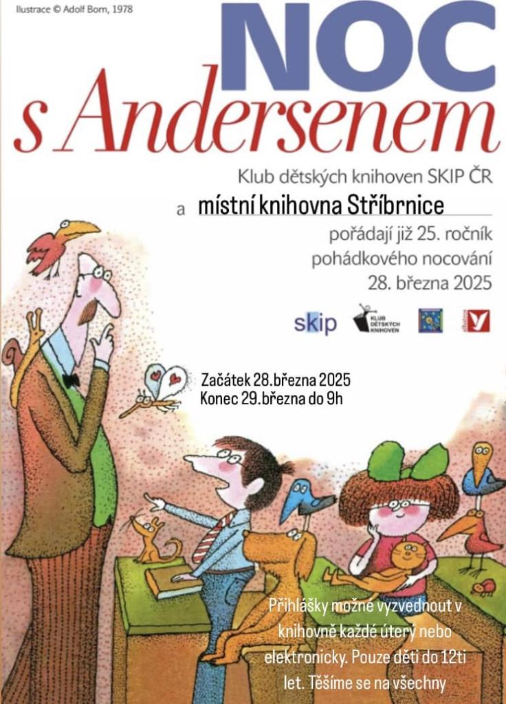 Pohádkové nocování v Místní knihovně Stříbrnice dne 28.3.2025 - NOC s ANDERSENEM pro děti do 12ti let.