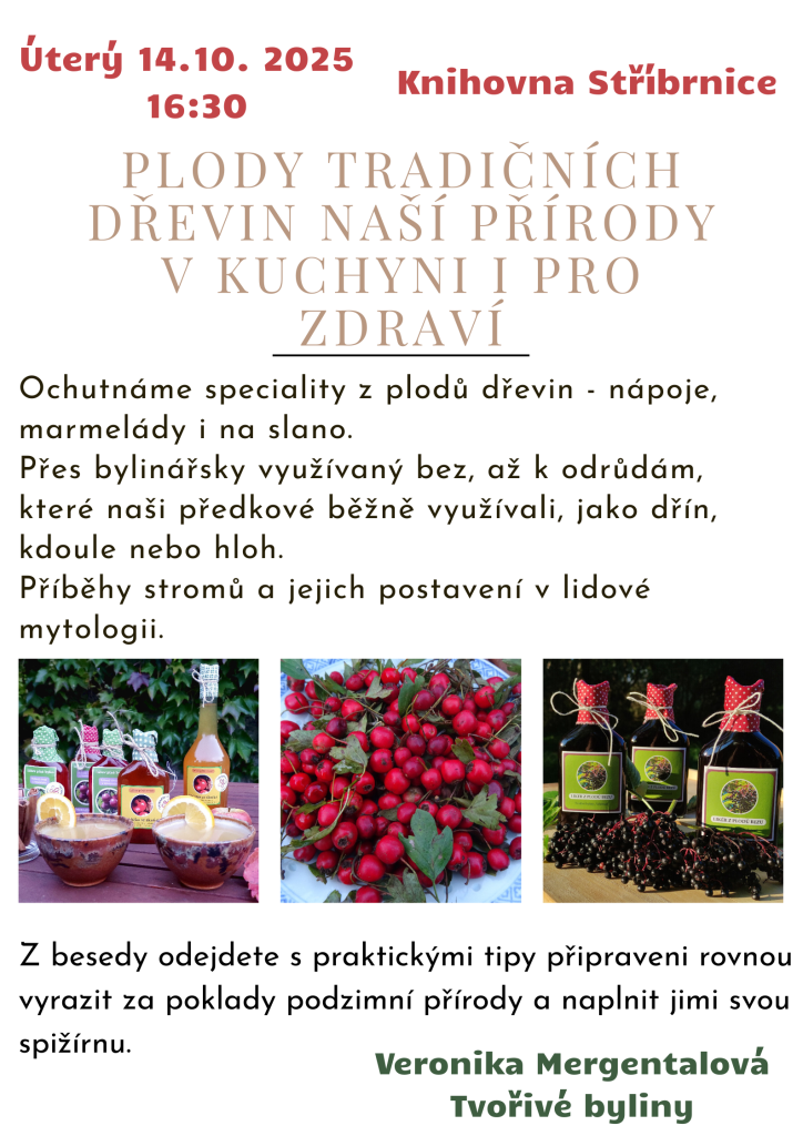 Plody tradičních dřevin naší přírody v kuchyni i pro zdraví 14.10.2025 - knihovna Stříbrnice