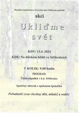 Ukliďme svět - úklid obce Stříbrnice 13.4.2024