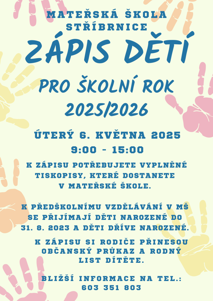 Zápis dětí do MŠ Stříbrnice na školní rok 2025/2026